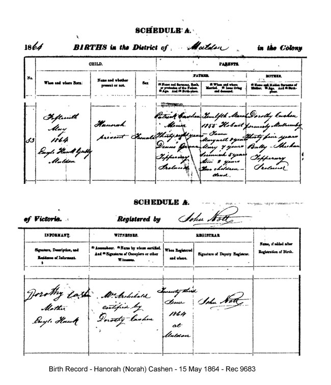 Norah was born at Eagle Hawk Gully, Maldon, on 15 May 1864.